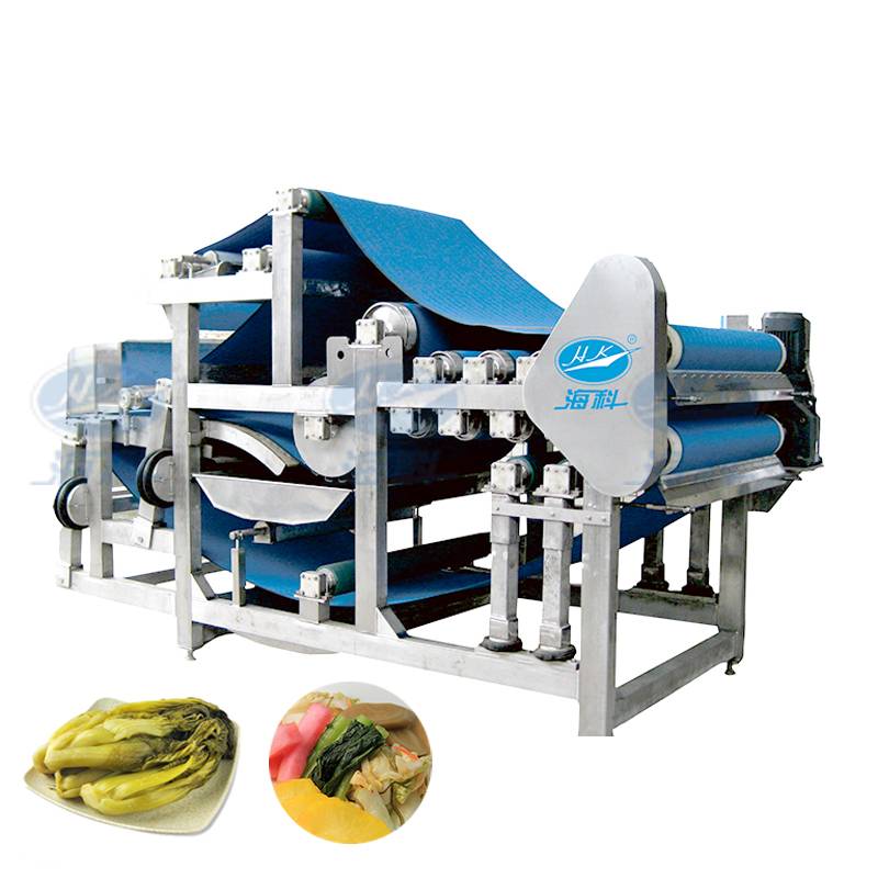 本設(shè)備采用機(jī)械壓榨方式,連續(xù)脫去經(jīng)腌制過后蔬菜類的內(nèi)部水分,特別適用于醬菜行業(yè)脫水使用。