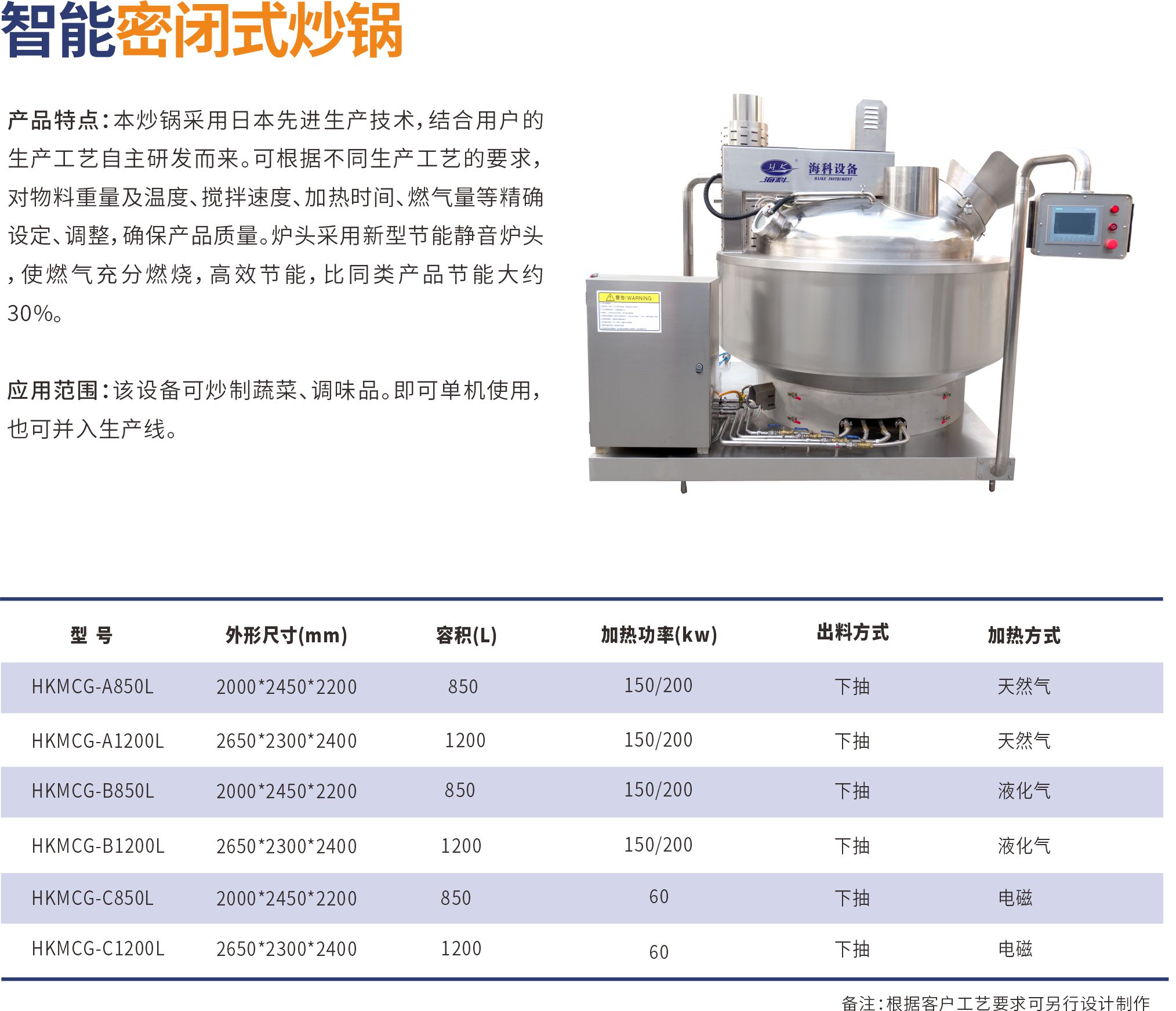 本炒鍋采用日本先進(jìn)生產(chǎn)技術(shù),結(jié)合用戶的生產(chǎn)工藝自主研發(fā)而來??筛鶕?jù)不同生產(chǎn)工藝的要求,對物料重量及溫度、攪拌速度、加熱時間、燃?xì)饬康染_設(shè)定、調(diào)整,確保產(chǎn)品質(zhì)量。爐頭采用新型節(jié)能靜音爐頭,使燃?xì)獬浞秩紵?,高效?jié)能,比同類產(chǎn)品節(jié)能大約30%。