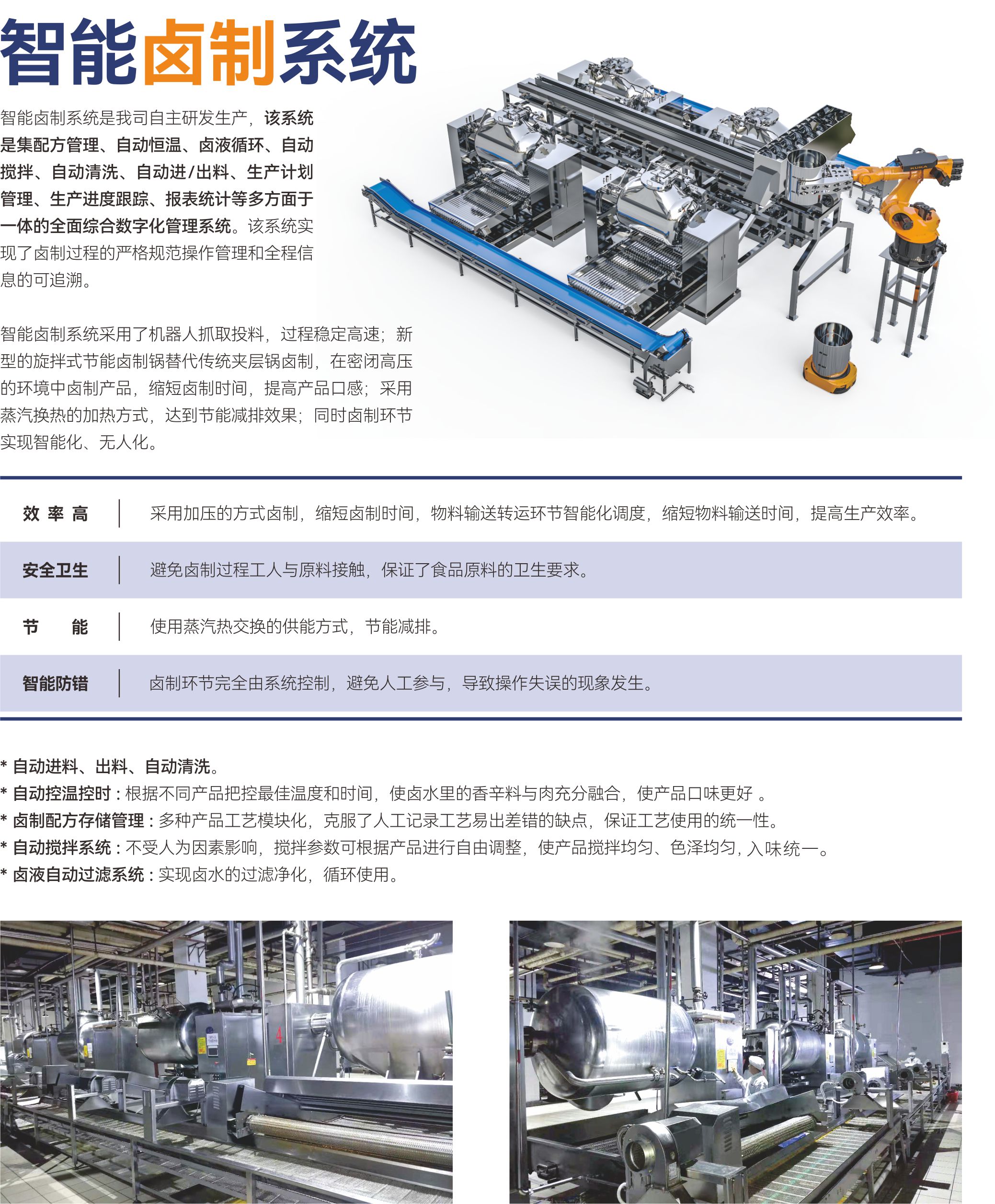 該系統(tǒng)是我司自主研發(fā)生產(chǎn),集配方管理、自動恒溫、鹵液循環(huán)、自動攪拌、自動清洗、自動進/出料、生產(chǎn)計劃管理、生產(chǎn)進度跟蹤、報表統(tǒng)計等多方面于一體的全面綜合數(shù)字化管理系統(tǒng)。該系統(tǒng)實現(xiàn)了鹵制過程的嚴格規(guī)范操作管理和全程信息的可追溯。