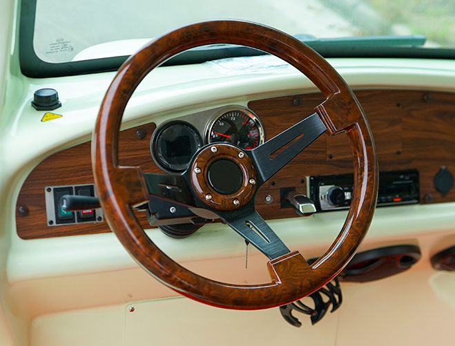 玻璃鋼車身前度高,耐腐蝕,壽命長(zhǎng)。 全車采用汽車級(jí)優(yōu)質(zhì)油漆,電腦調(diào)漆,專業(yè)噴涂設(shè)備,烤漆工藝,色彩亮麗,歷久彌新。 專利前橋及懸掛,不磨輪胎。 整體式后橋、無(wú)縫焊接橋